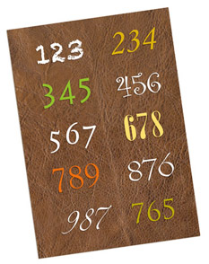 Beim Auftrag brauchen Sie nur die Zahlenkombination der gewünschten Schrift mailen (z.B.: 345 in rot, 789 in dunkelgrün oder 987 in schwarz oder dunkelblau, ...).