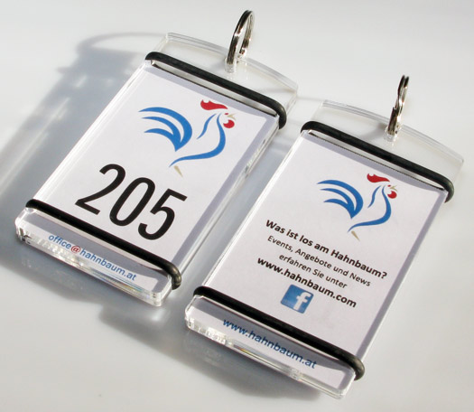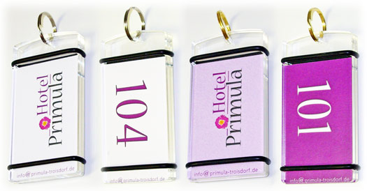 Was immer Sie Ihre Gäste wissen lassen möchten, mit unseren Schlüsselanhänger wird's möglich"